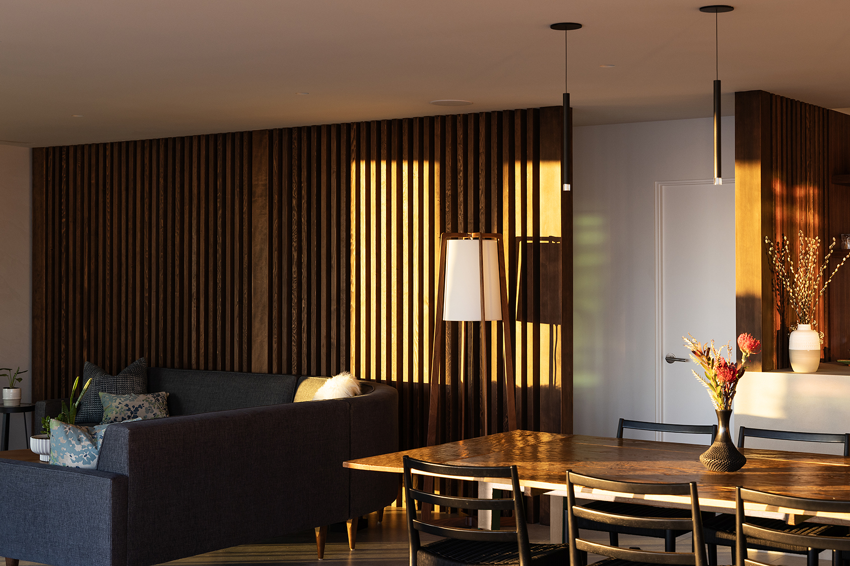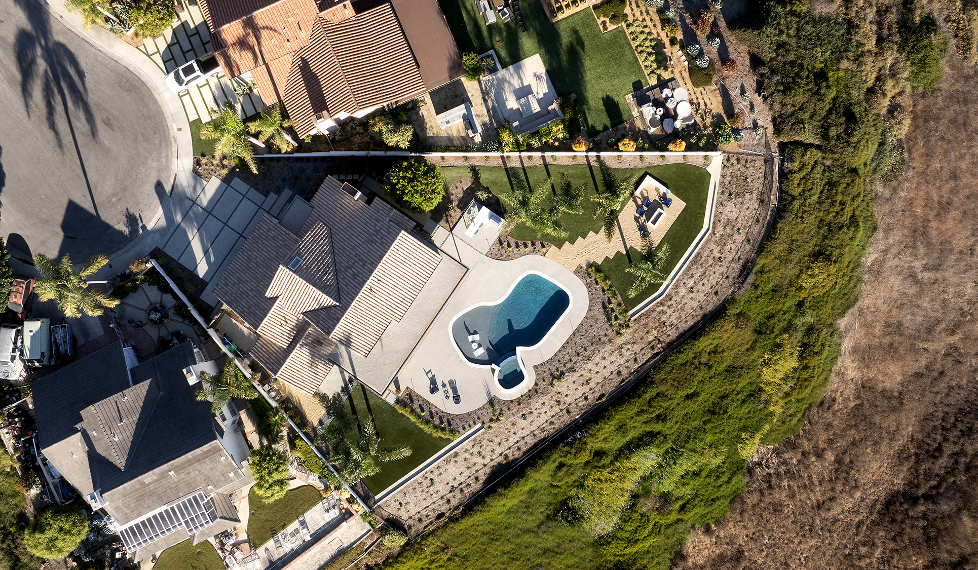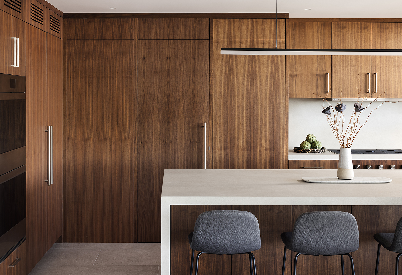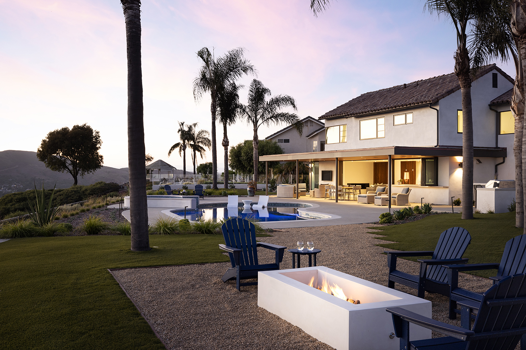 Material selections are cohesive and intentional, favoring texture and shadow over ornament. The result is a composed architectural statement — contemporary in execution, tailored to Coastal Southern California.