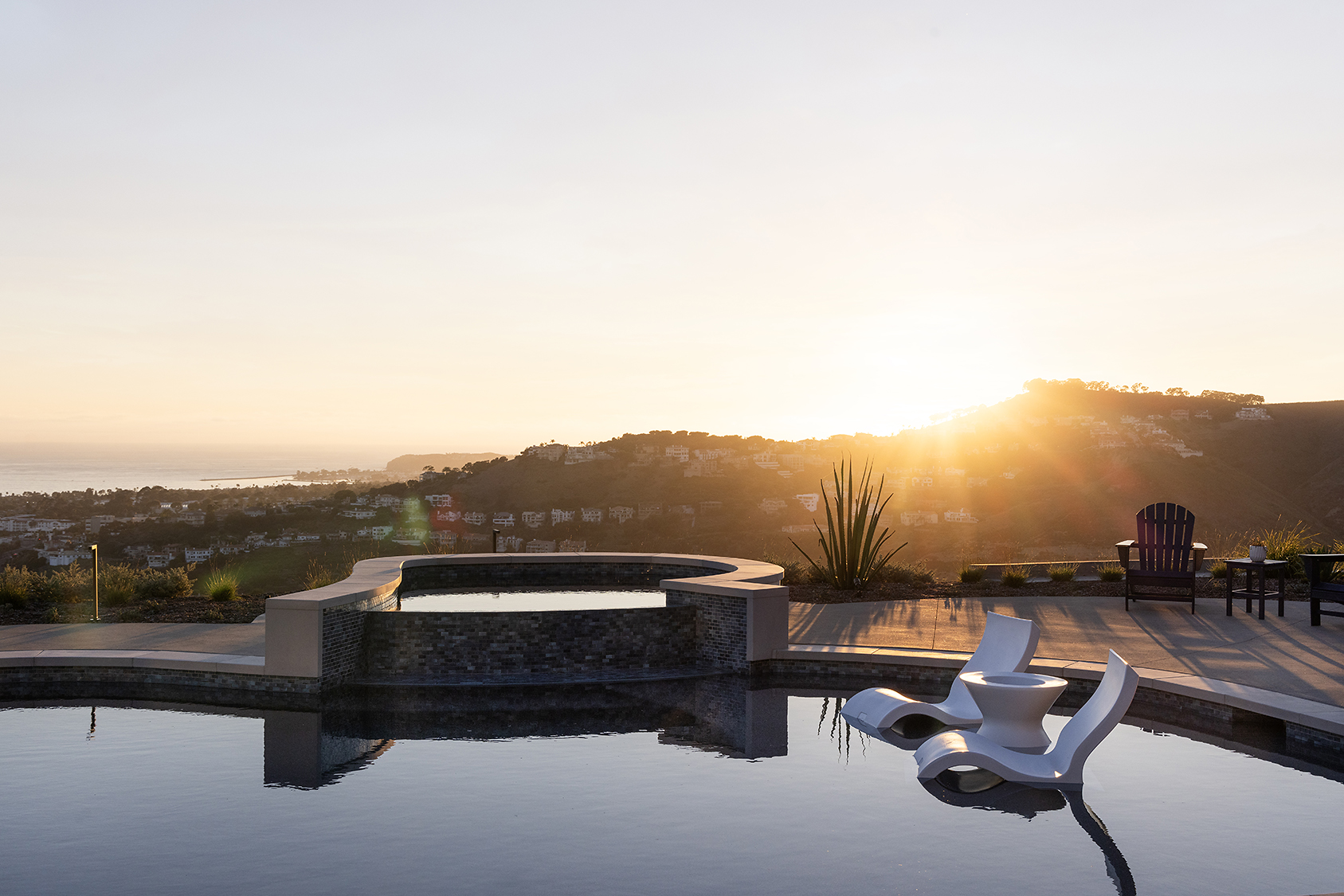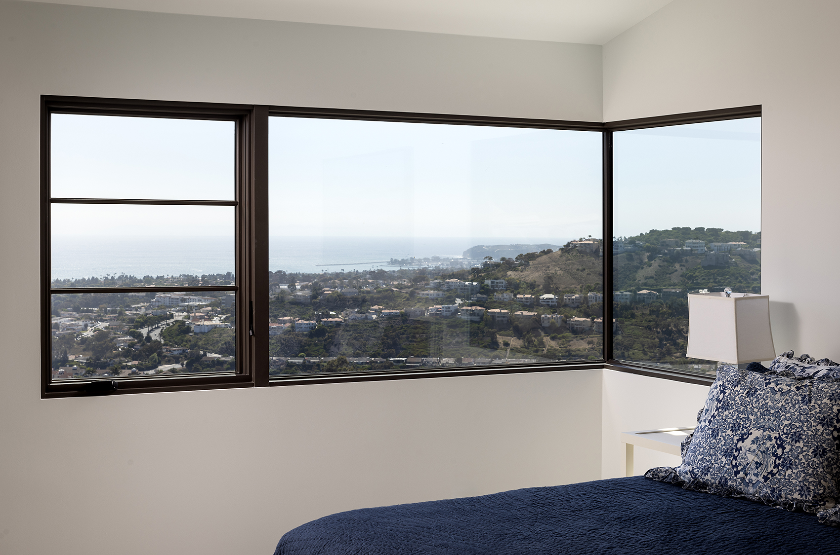 This coastal residence in San Clemente is defined by contemporary massing, organic natural materiality, and a deliberate engagement with its elevated site. The architecture emphasizes clean lines and balanced proportions, using white stucco volumes, expansive glazing, and textured stone to create a refined coastal presence.